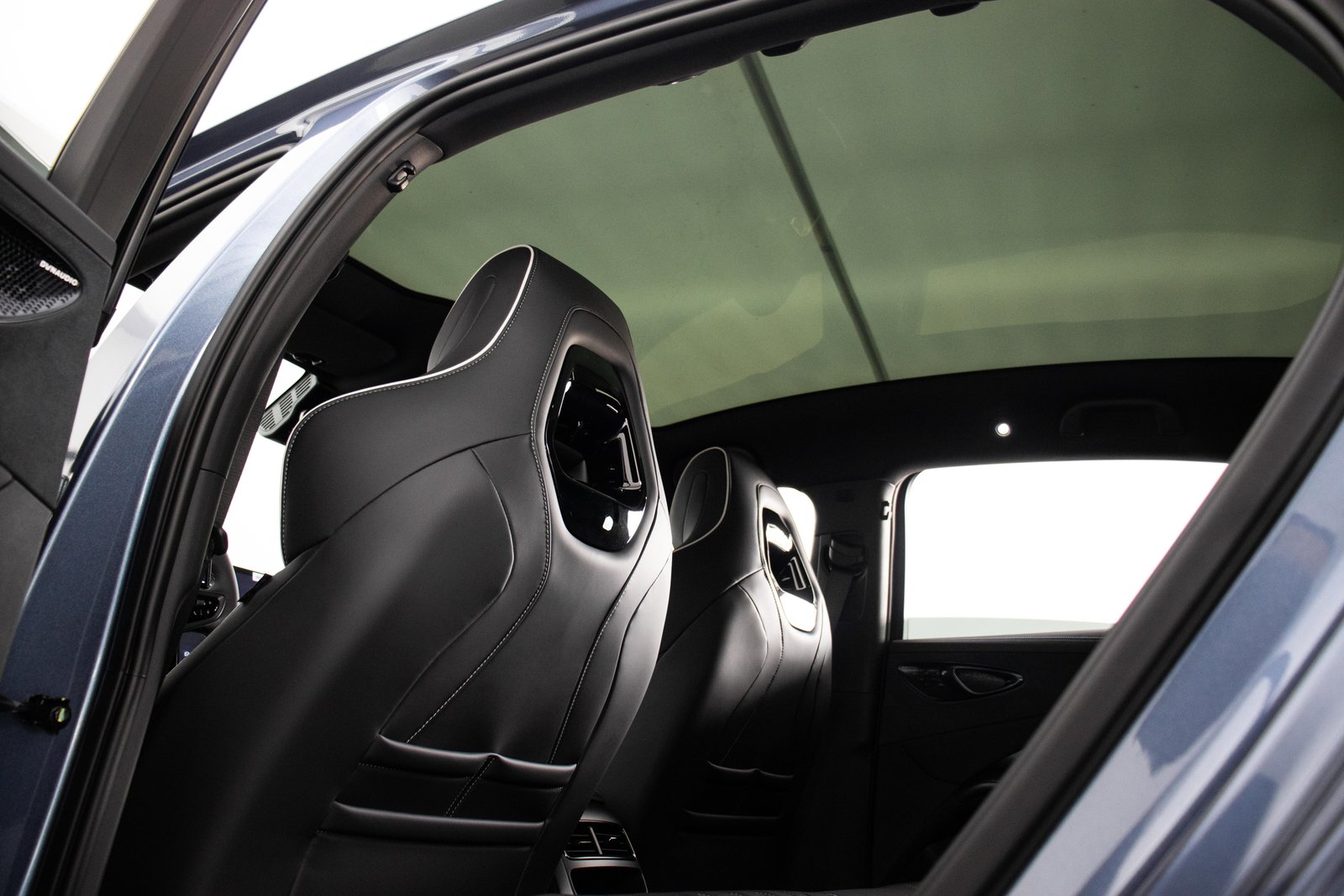 Nas laterais, você observa belas rodas de aro 19 polegadas com acabamento diamantado e fundo preto, além das maçanetas que ficam rentes às portas quando o veículo está travado, e ao destravar elas se projetam para fora.