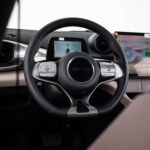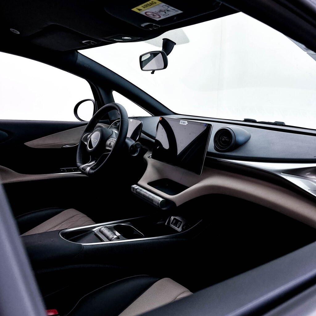 Apesar do visual característico de monovolume, que faz até lembrar o Honda Fit, o BYD Dolphin possui o mesmo entre-eixos de um Corolla, você acredita? São 2,7 metros que rendem excelente aproveitamento de espaço interno. E claro, o design possui características que remetem ao oceano (Dolphin quer dizer “Golfinho” em inglês). As lanternas traseiras possuem um desenho ondulado como o mar, e são em LED. E eu diria até que se você entrar no carro e olhar de frente para o painel, as saídas de ar e o desenho que as interliga faz parecer os olhos do golfinho. Além disso, o acabamento superior do painel e também das portas remete a escamas. As maçanetas têm o formato de barbatana e você vai notar algumas outras peculiaridades.