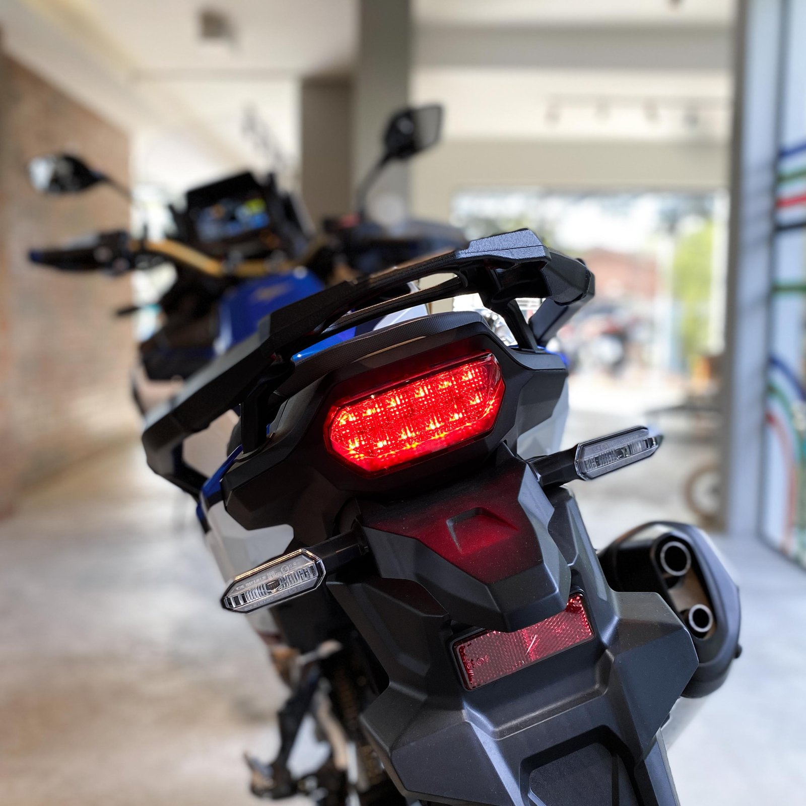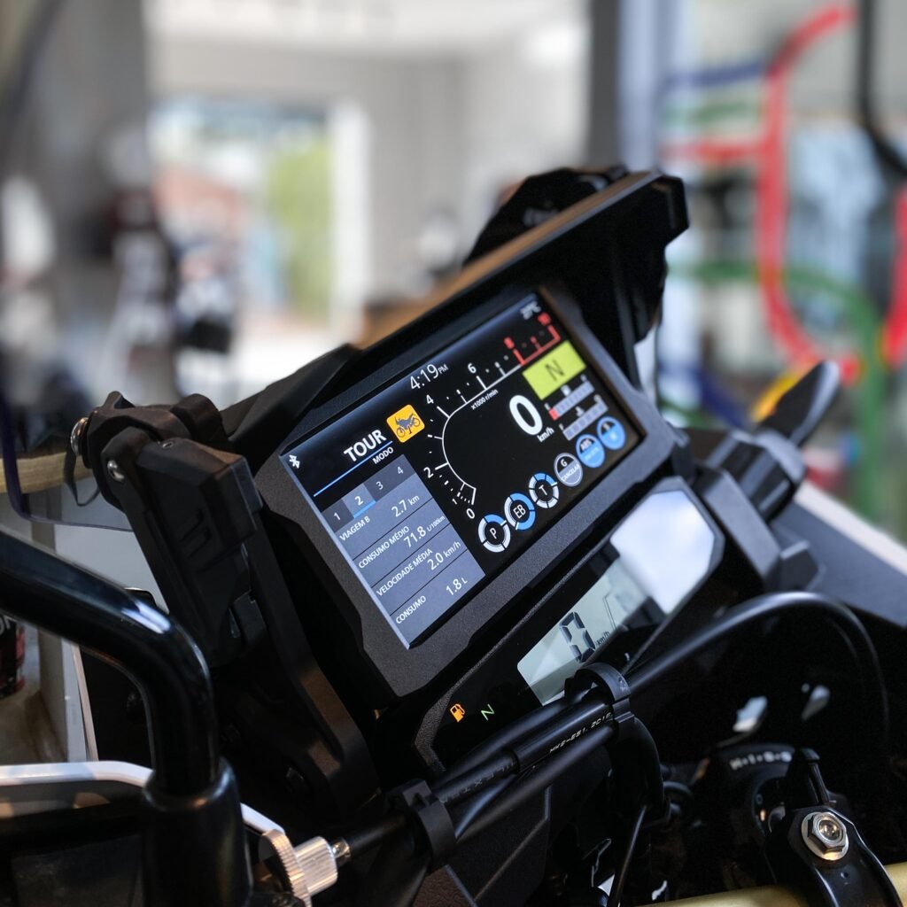 A Africa Twin está bem servida de tecnologia embarcada e já conta com painel 100% digital, que é uma tela colorida touchscreen de 6,5 polegadas onde você pode conectar o seu celular por meio dos sistemas Apple CarPlay e Android Auto e usufruir do GPS no Waze ou Google Maps, por exemplo. São muitas informações disponíveis no computador de bordo, mas tudo de forma muito clara para o piloto. Por essa tela, é possível selecionar o modo de condução e ter a modo ajustada automaticamente pela eletrônica, incluindo suspensão, freios ABS, controle de tração, entre outros. Quando falamos da tecnologia, é impossível não citar um ponto extremamente positivo na Africa Twin que são as luzes dianteiras e traseiras todas em LED. Ela conta inclusive com as chamadas “cornering lights”, que são as luzes de LED dedicadas a iluminar as curvas exatamente para o lado que você está virando.