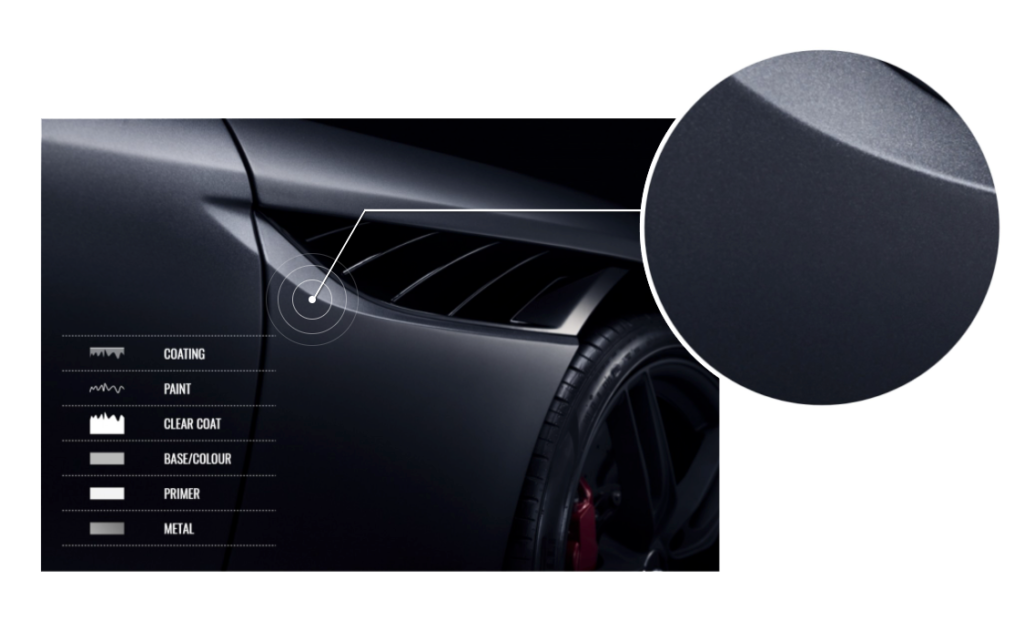 • A camada aplicada é muito fina, porém é muito resistente. Resiste completamente a produtos químicos e não pode ser removida com polimento. Em forma líquida durante a aplicação, o coating penetra na estrutura dos poros, selando-os. Isso aumenta significativamente o efeito brilhante e liso de qualquer pintura automotiva . O coating cerâmico possui uma ótima resistência contra raios UV, o que previne a pintura do processo oxidativo.