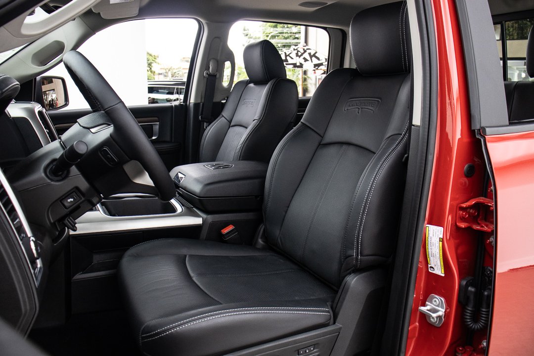 E por falar nos bancos, são em couro de boa qualidade e o do motorista conta com ajustes elétricos e duas opções de memória. O volante também é em couro e conta com aquecimento. Um diferencial da RAM é que os pedais de freio e acelerador também são ajustáveis eletricamente, o que torna possível uma pessoa de estatura mais baixa dirigir com conforto o veículo de 5,82m de comprimento e 1,97 de altura.
