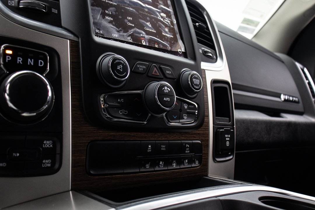 Se você pensa que a RAM Classic oferece menos itens de conforto e tecnologia para conseguir se manter na faixa de preço de picapes médias, está enganado. Aliás, ela oferece até mais que alguns modelos inferiores da mesma faixa de preço. Pra começar, o sistema de som é premium e assinado pela marca Alpine, possui 9 alto-falantes e um subwoofer com diâmetro de 10 polegadas. Tudo isso resulta em 506 watts de potência no som. A central multimídia UConnect, já conhecida nos modelos da Fiat, possui 8,4 polegadas e integração com Android e iOS. A navegação GPS é integrada. O sistema controla, ainda, algumas funções do carro como ar-condicionado digital de duas zonas, ventilação e aquecimento dos bancos dianteiros. Os bancos traseiros também contam com aquecimento, controlados por um painel atrás do console central.